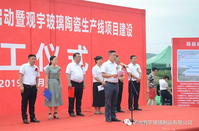 瀘州觀宇玻璃制品有限公司董事長(zhǎng)黃云彬同志致辭表示,觀宇玻璃陶瓷生產(chǎn)線項(xiàng)目建成后可日產(chǎn)各類玻璃陶瓷制品80余萬(wàn)只,年產(chǎn)值達(dá)5億元以上,利稅6000萬(wàn)元以上,解決就業(yè)1000余人!屆時(shí),四川觀宇實(shí)業(yè)有限公司將借力瀘州觀宇玻璃的品牌張力,在市場(chǎng)深根,品種大全,安全環(huán)保,管理先進(jìn),技術(shù)創(chuàng)新,人文和諧的基礎(chǔ)上致力于將隆昌玻陶產(chǎn)業(yè)發(fā)展為經(jīng)濟(jì)共同體,大家共贏共進(jìn),和諧健康發(fā)展!